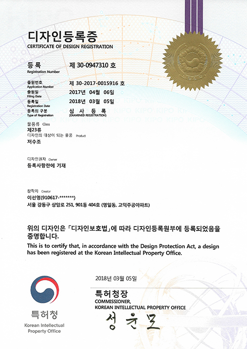 특허증-저수조(1톤)