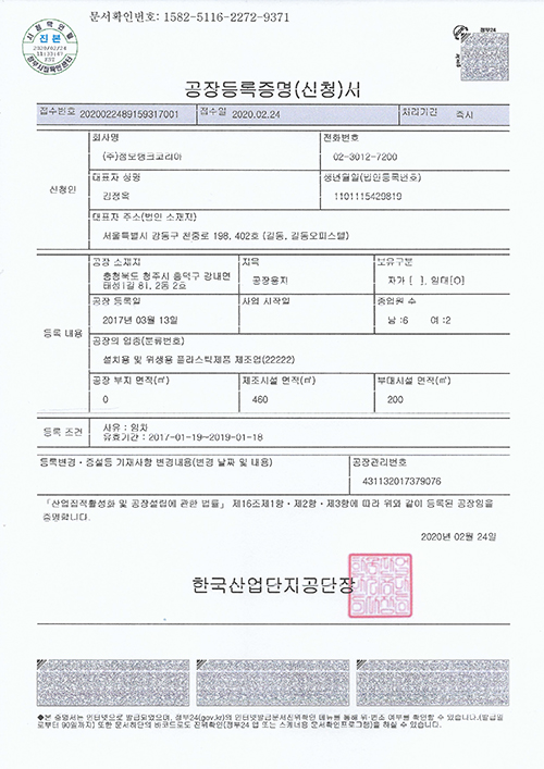 공장등록 증명서