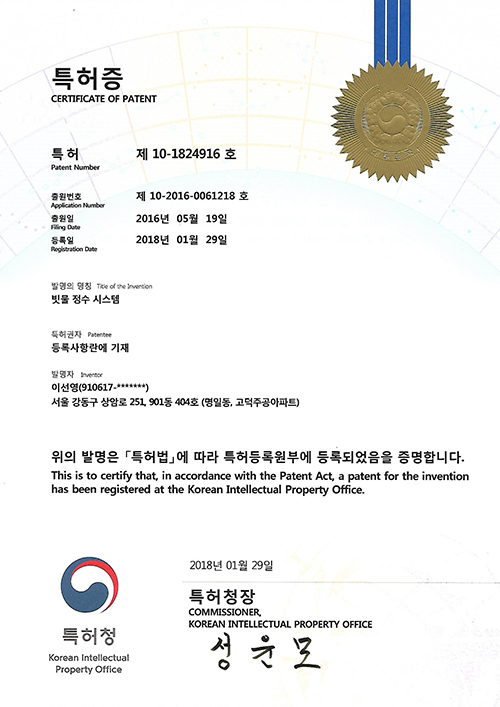 특허증-빗물정수시스템