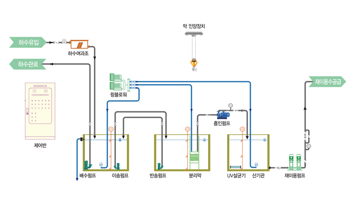 “중수도”란 개별 시설물이나 개발사업 등으로 조성되는 지역에서 발생하는 오수를 공공하수도로 배출하지 아니하고 재이용할 수 있도록 개별적 또는 지역적으로 처리하는 시설을 말한다.